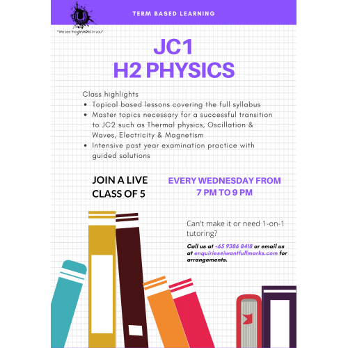 - Master topics necessary for a successful transition to JC2 such as Thermal physics, Oscillation & Waves, Electricity & Magnetism